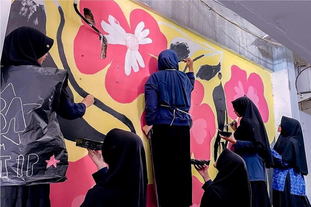 Keseruan Ujian Praktik Mural Santri SMP DTBS Putri: Ekspresikan Cerita Lewat Goresan Seni