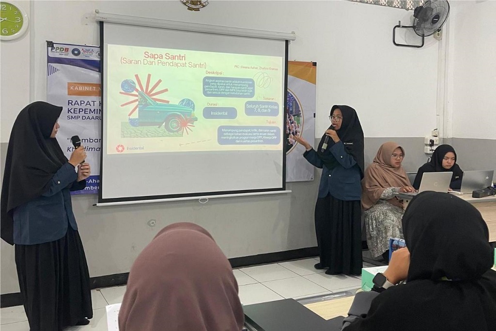 Jumat (19/9/2025), suasana penuh semangat terasa di SMP Daarut Tauhiid Boarding School (DTBS) Putri. Para pengurus Organisasi Pelajar Pesantren (OPP) dan Majelis Perwakilan Kelas (MPK) Kabinet Naqeeba Mafaza Masa Bakti 2025/2026 memulai rangkaian Rapat Kerja dan Latihan Dasar Kepemimpinan Santri yang berlangsung hingga Ahad (21/9/2025).